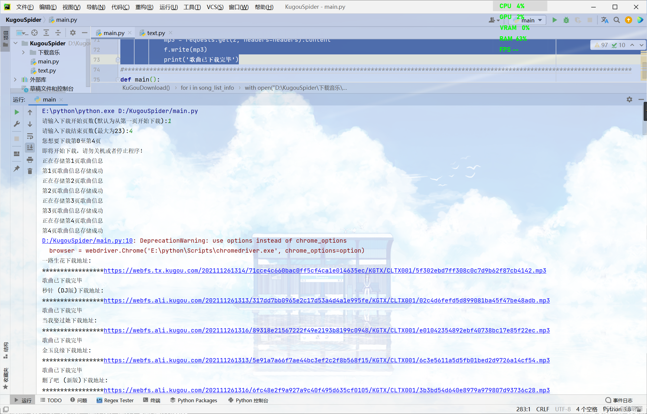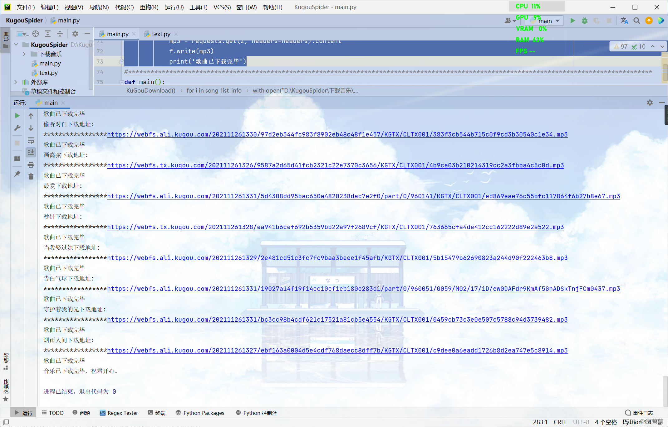 # #此项目为爬取酷狗排行榜并批量下载的python项目