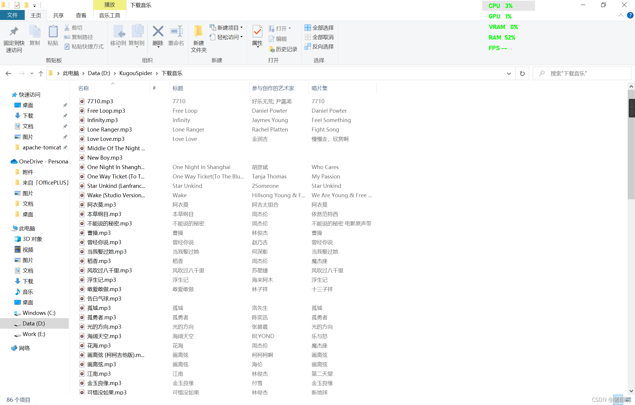这一步结束我们就完成了对酷狗音乐排行榜的歌曲爬取,下面展示运行过程效果图以及运行结果: