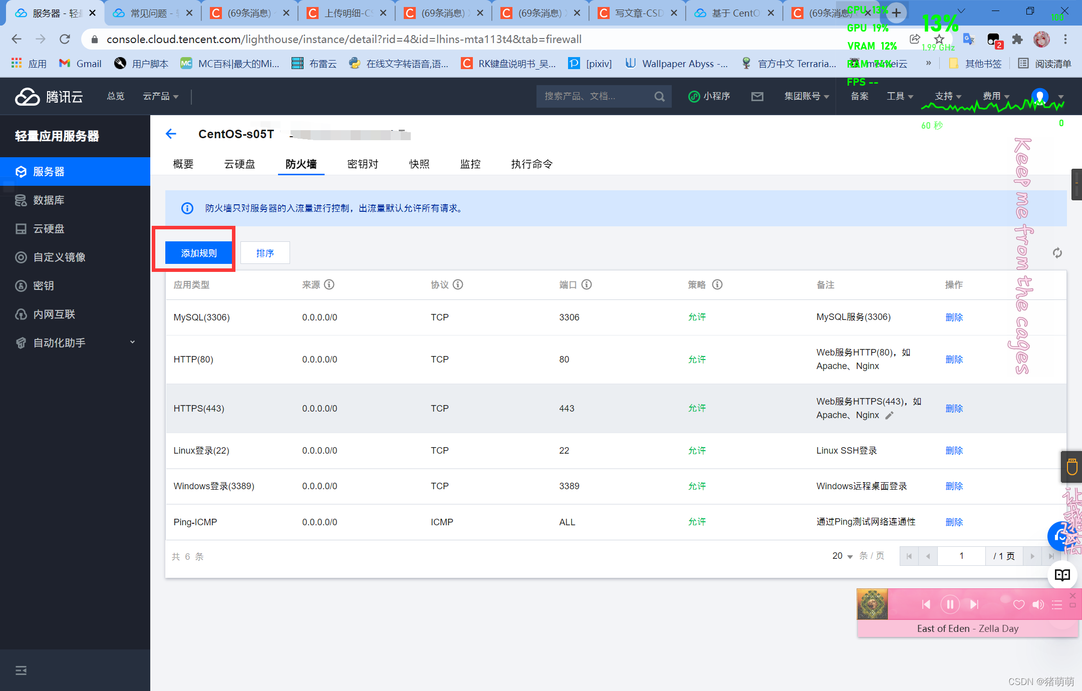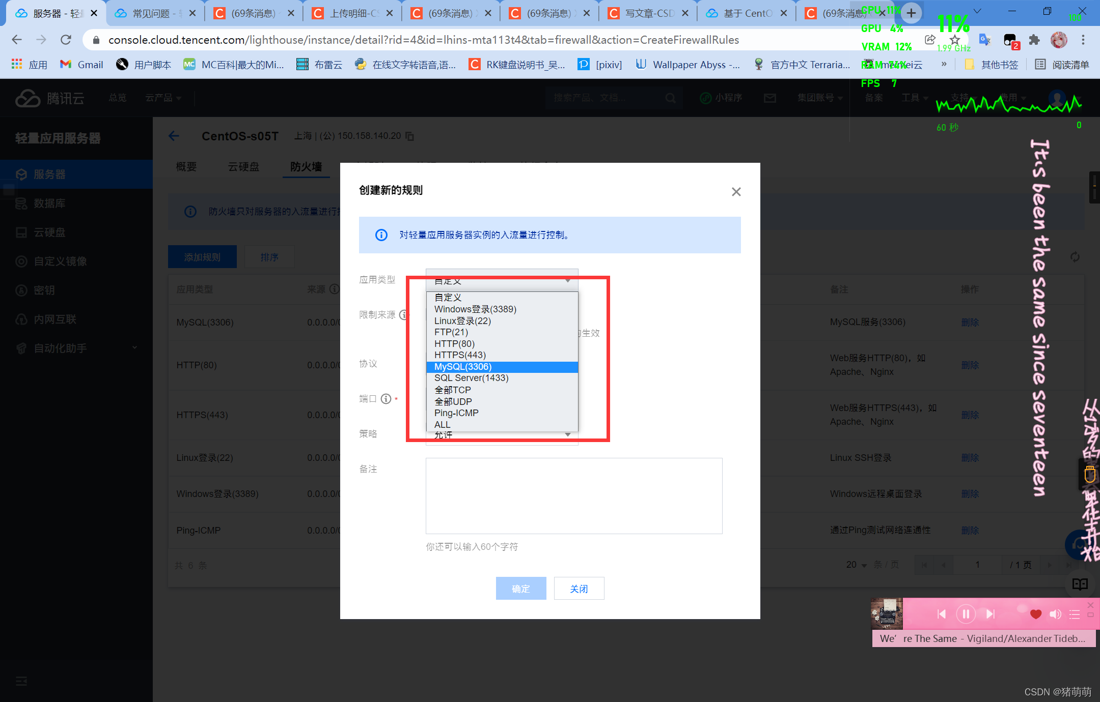 首先在腾讯云服务器管理中开放3306MySQL端口