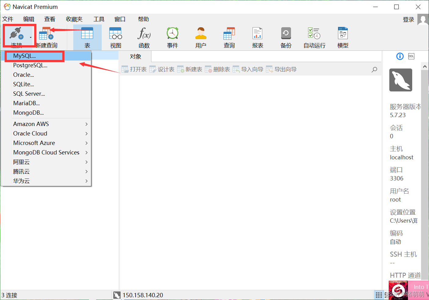 接下来我们要使用Navicat对服务器数据库进行操作