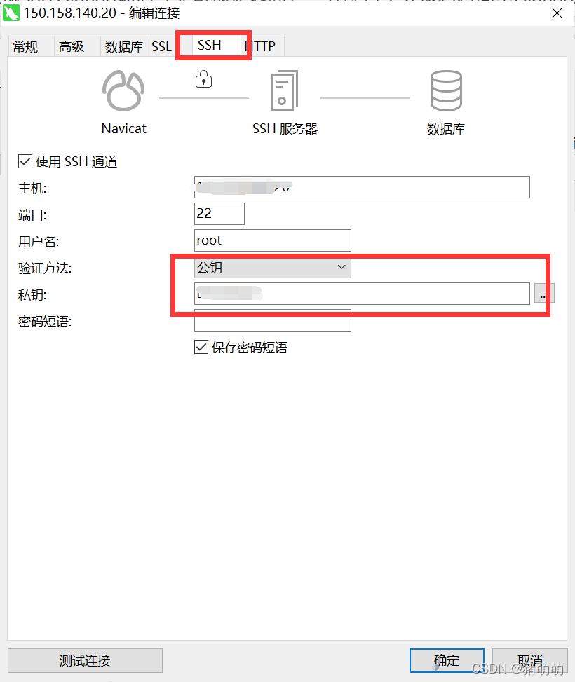 将使用SSH通道勾选上,然后选择服务器密钥,即可连接服务器!(密钥NP!!!!)