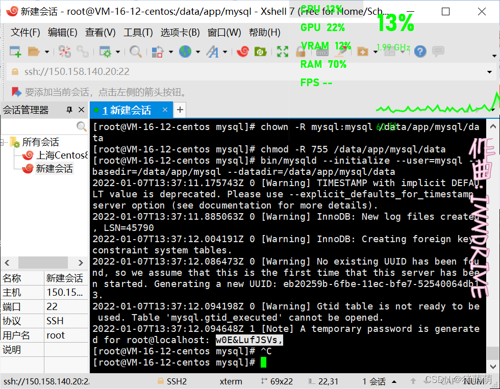 务必记住初始密码,我的生成的初始密码就是:w0E&LufJSVs,